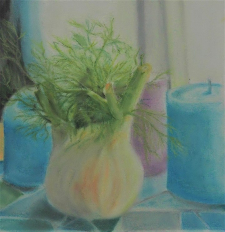 Otsikkokuvassa möllöttelee yksi pastelliharjoitelma fenkolista. Ajattelin ottaa helpon mallin ikuistamisen kohteeksi, vaan katin kontit: fenkolihan on tosi haasteellinen piirrettävä.